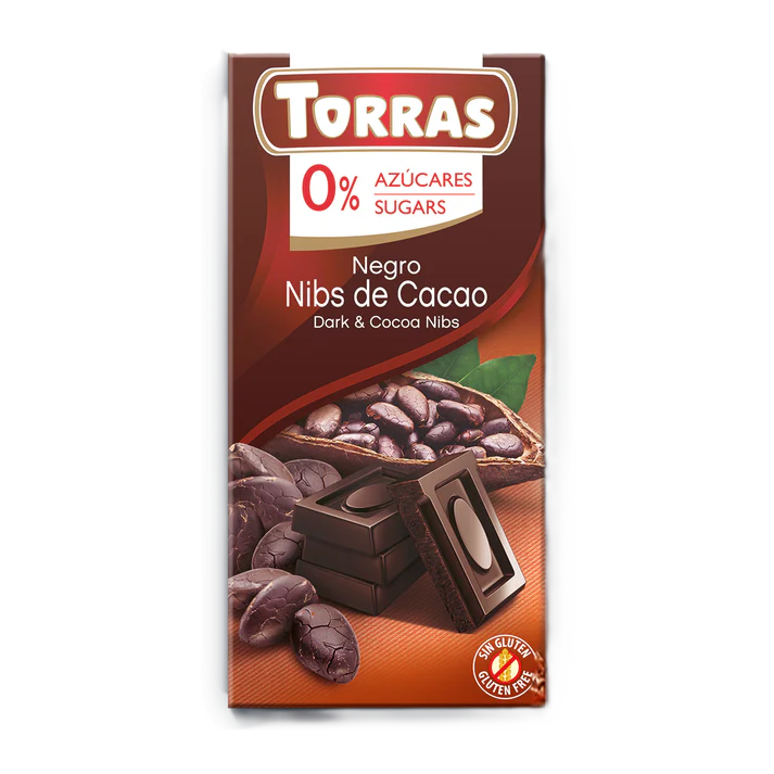Torras Dark Chocolate with Cocoa Nibs delivers a bold chocolate experience with an added crunch. The rich, smooth dark chocolate is perfectly complemented by the intense, roasted flavor of cocoa nibs for a deep, textured indulgence.